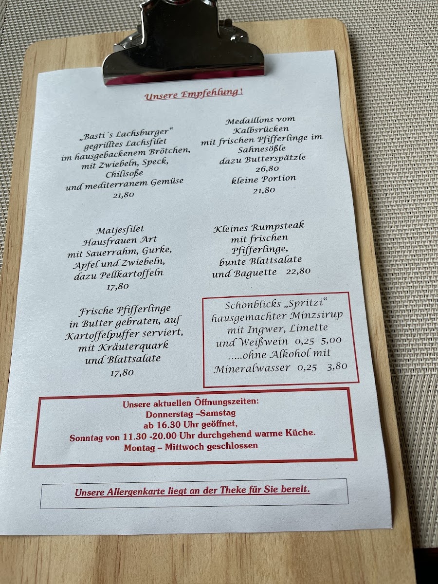 Hotel-Restaurant Schonblick - Petra Schmidt Menu